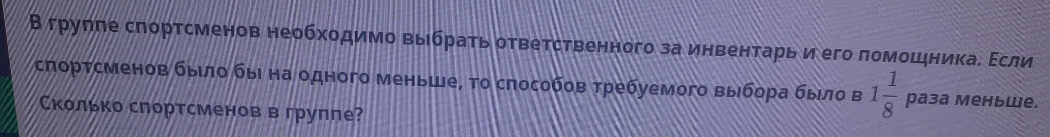Пусть n общее число людей в группе среди них нужно выбрать двух ; а именно ответственного за инвентарь и его помощника