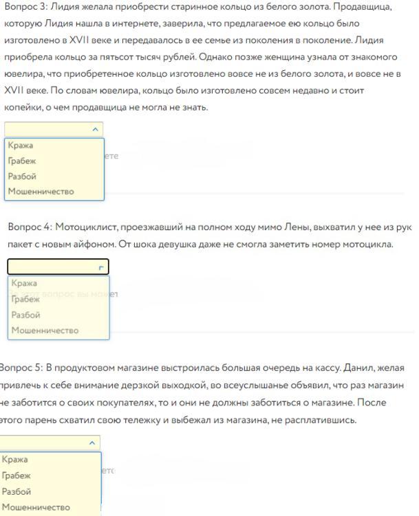 Ознакомьтесь с представленными ниже ситуациями и укажите, признаки состава какого преступления описаны в каждом случае.