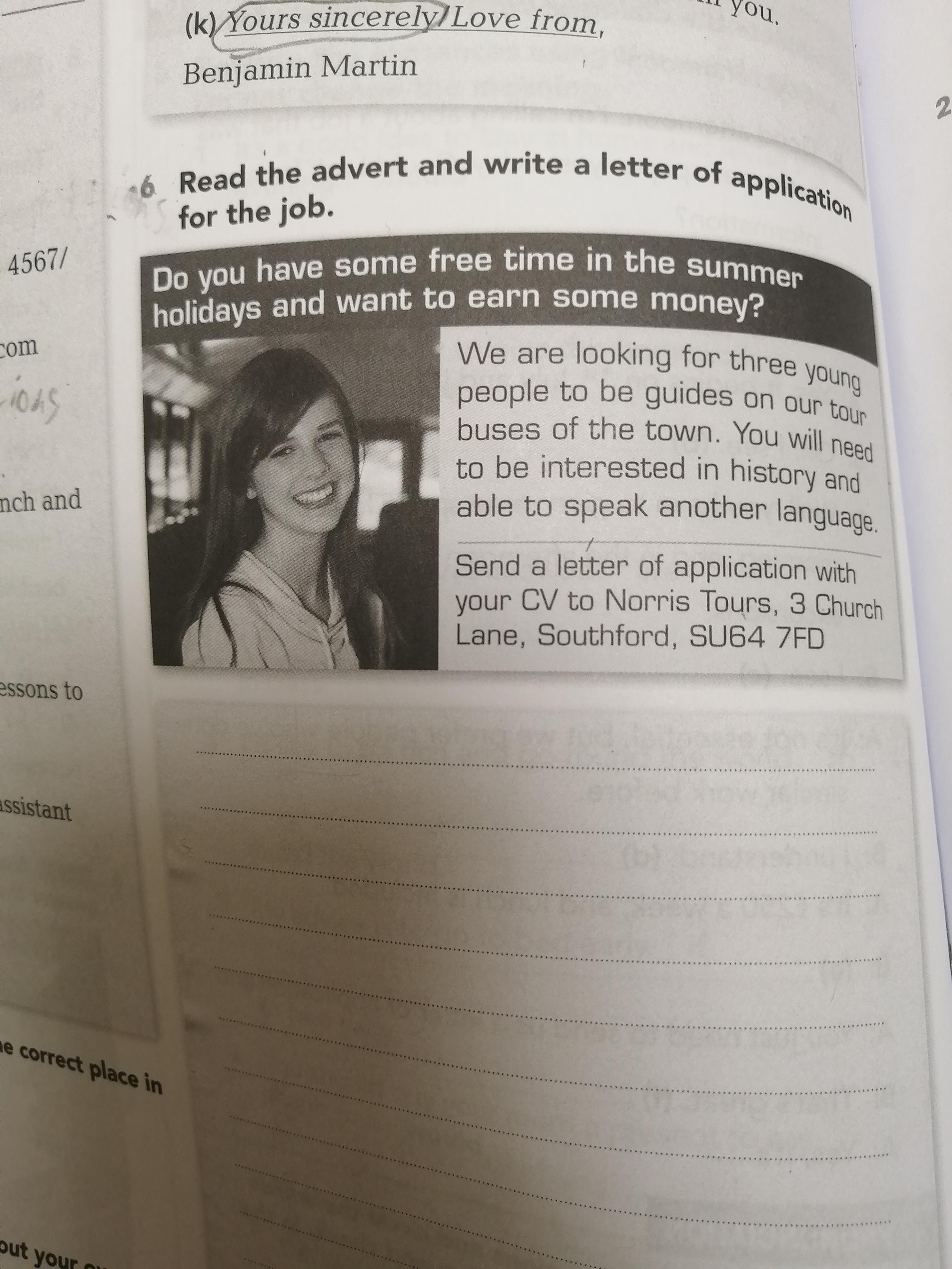 Read the advert and write a letter of application for the job.