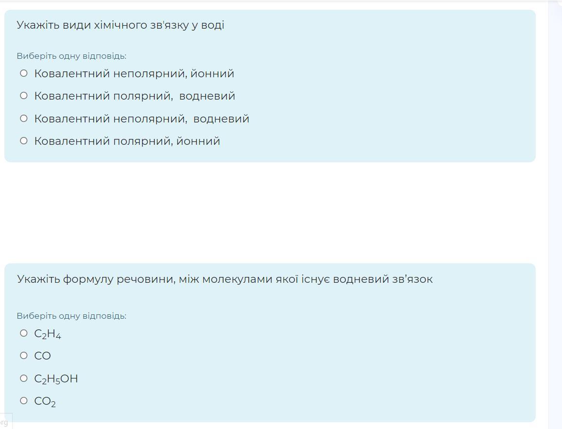 Укажіть формулу речовини, між молекулами якої існує водневий зв’язок: