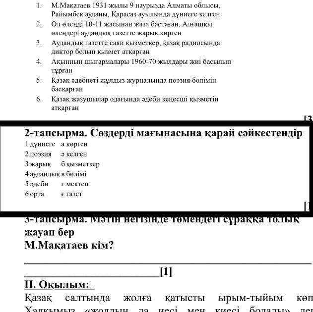 Сөздерді мағынасына қарай сәйкестендір