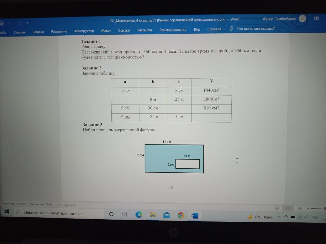 Задача: За час поезд проходит 360: 3=120
