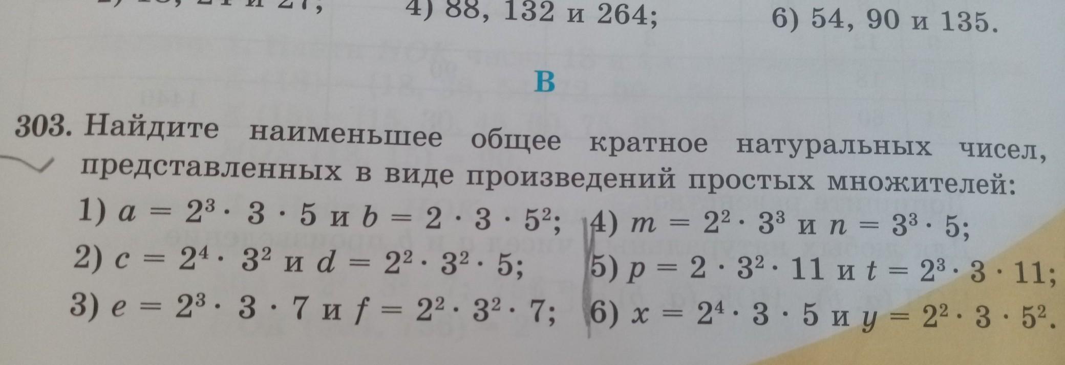 303. Найдите наименьшее общее кратное натуральных чисел, представленных в виде произведений простых множителей. Если вы в силе дать проверенный и нужный мне ответ, дам 40 баллов. Требую кого то с высоким званием. 5 класс.