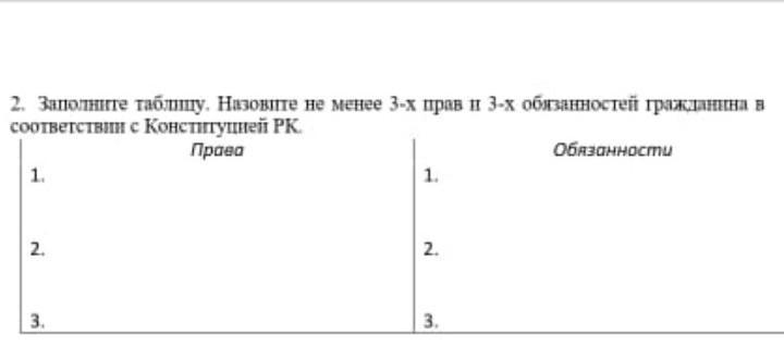 соблюдение конституции Рк, уважать права, честь и достоинство других граждан.