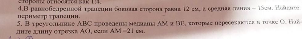 В равнобедренной трапеции бокавая сторонаравна 12см а средняя линия 15см Найдите периметр трапеции.