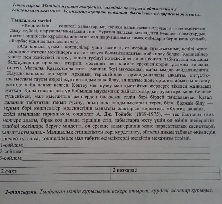 Факт: Көшпенді халықтың төзімділігі, қиындыққа қайыспайтын қайсарлығы, өзгенің жер суына, мекеніне қол сұқпай өмір сүргені.