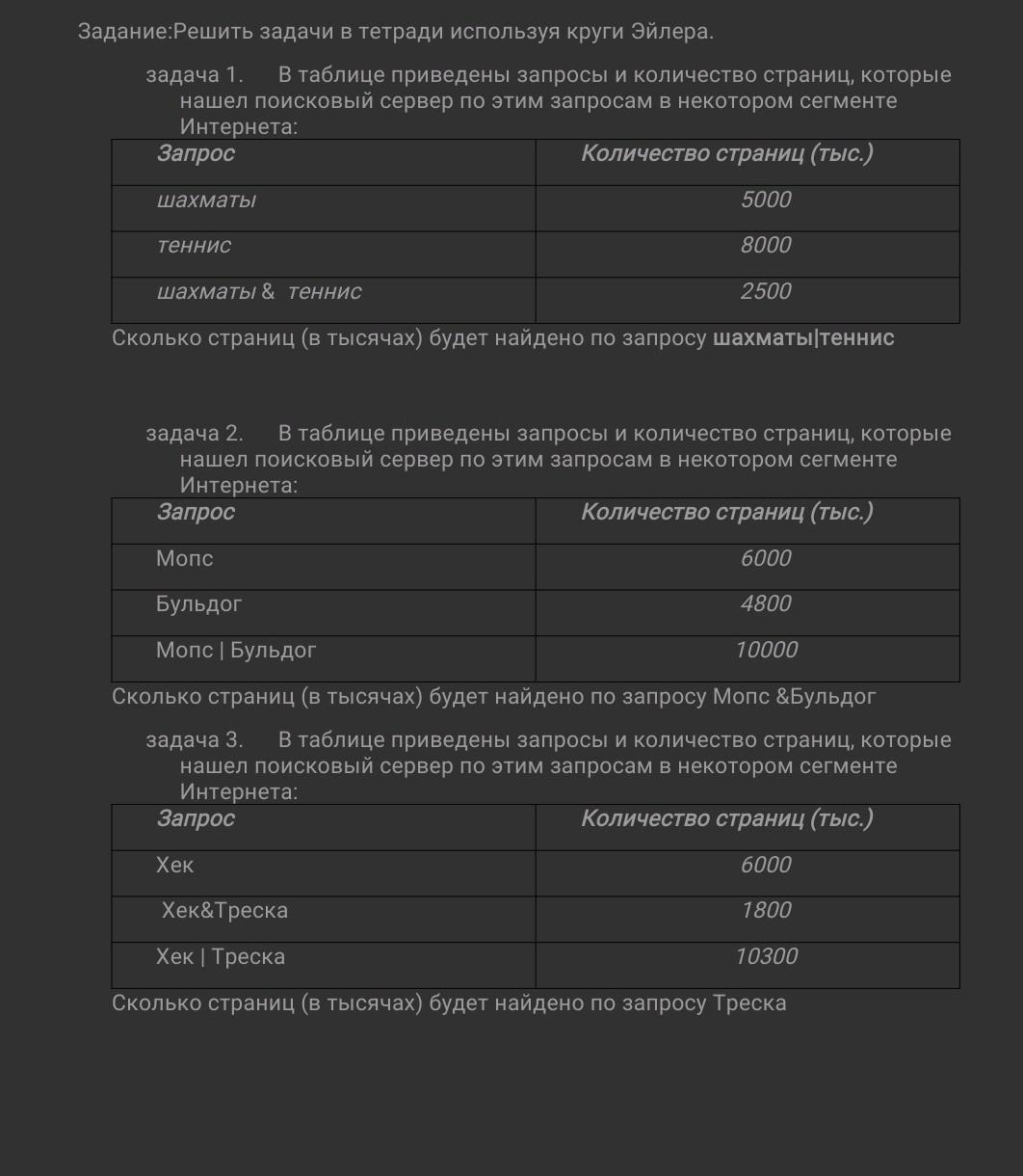 Задача 3. В таблице приведены запросы и количество страниц, которые нашел поисковой сервис по этим запросам в некотором сегменте Интернета.