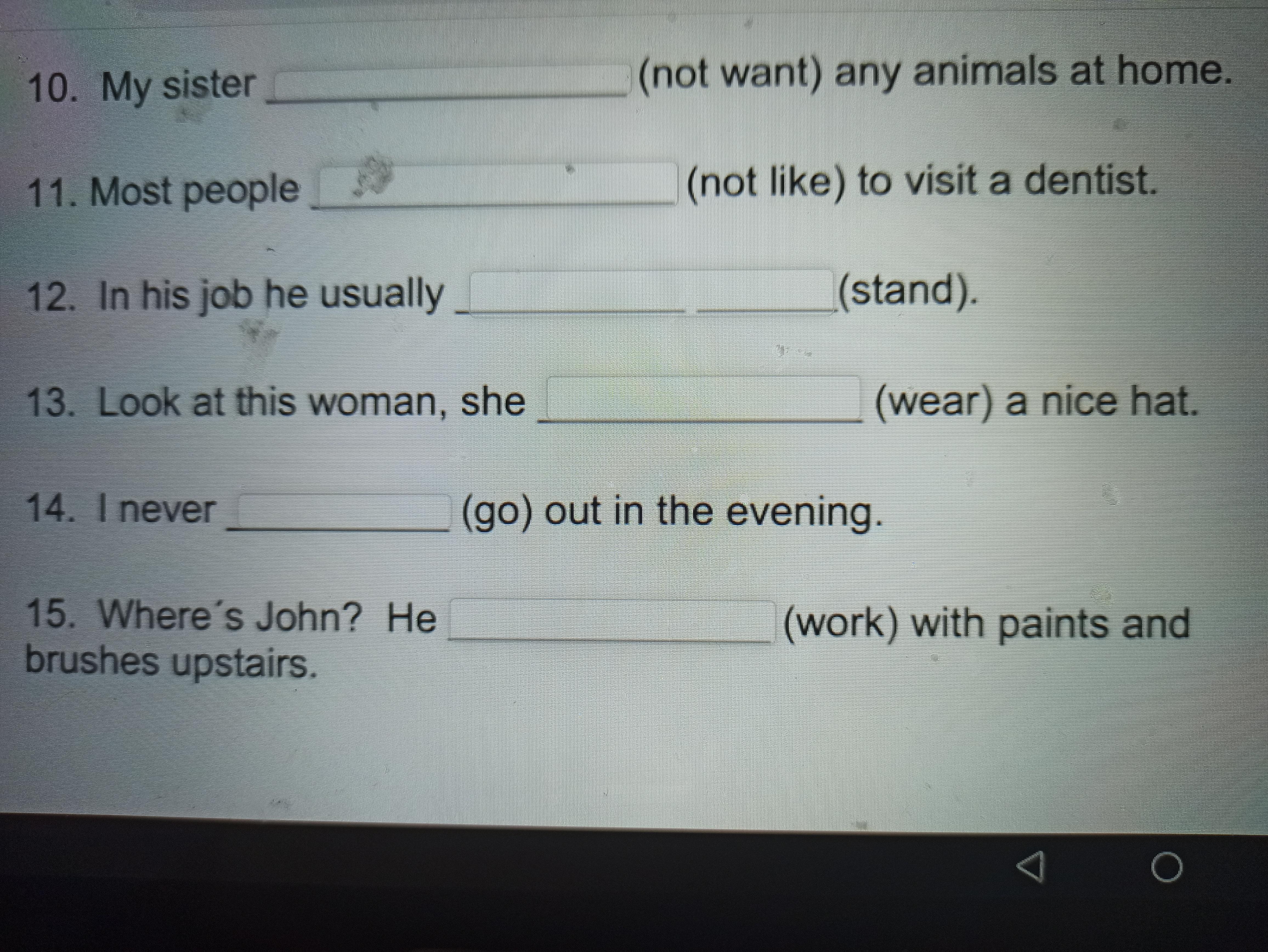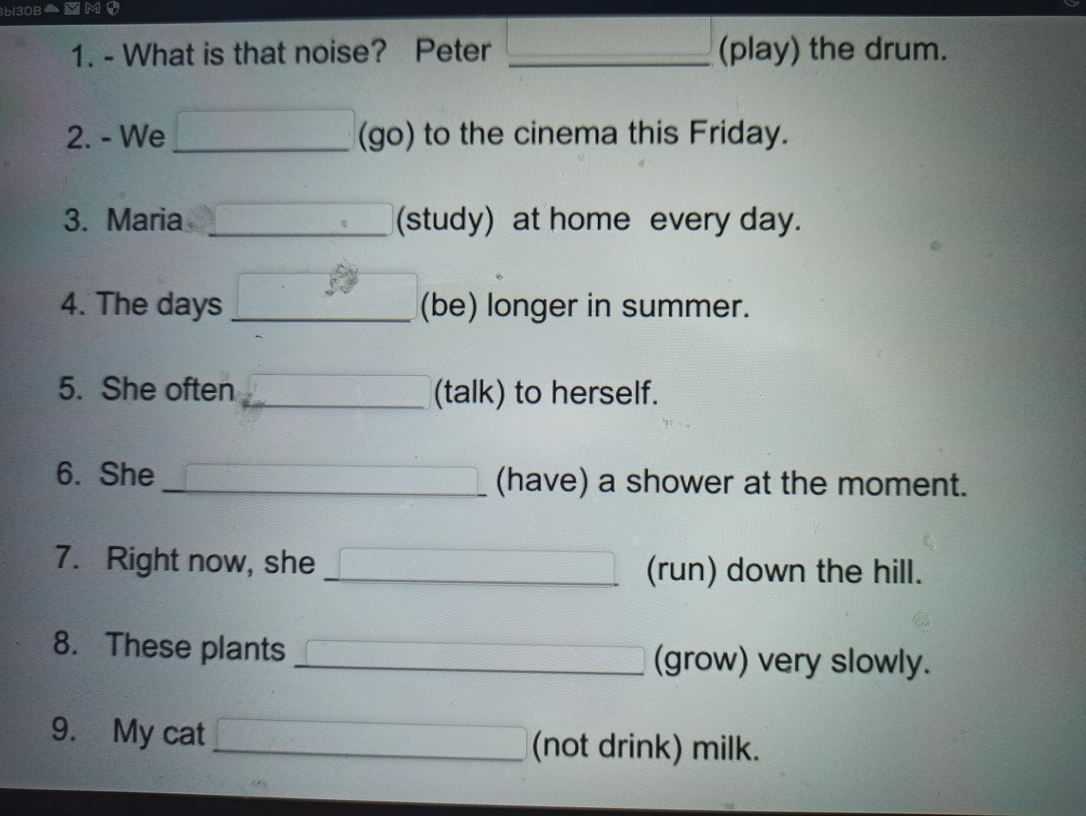 Завершите предложения настоящим простым или настоящим непрерывным(задание на фото)
