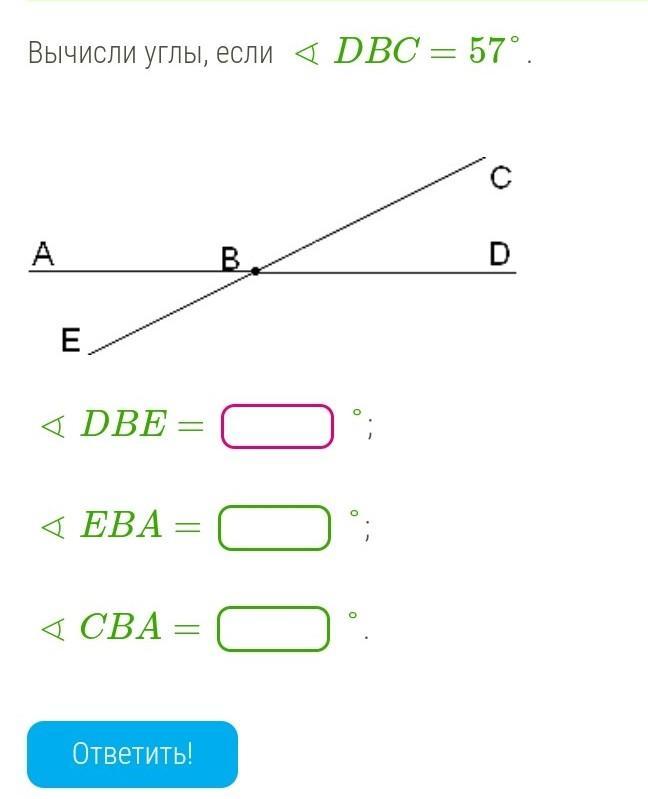 EBA будет равен 57°, т.к. углы DBC и EBA вертикальны.