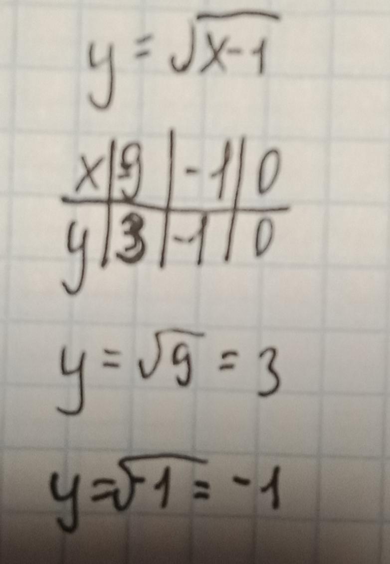 постройте график функции y=√x -1. По графику определите значение функции, если значение аргумента равно 9