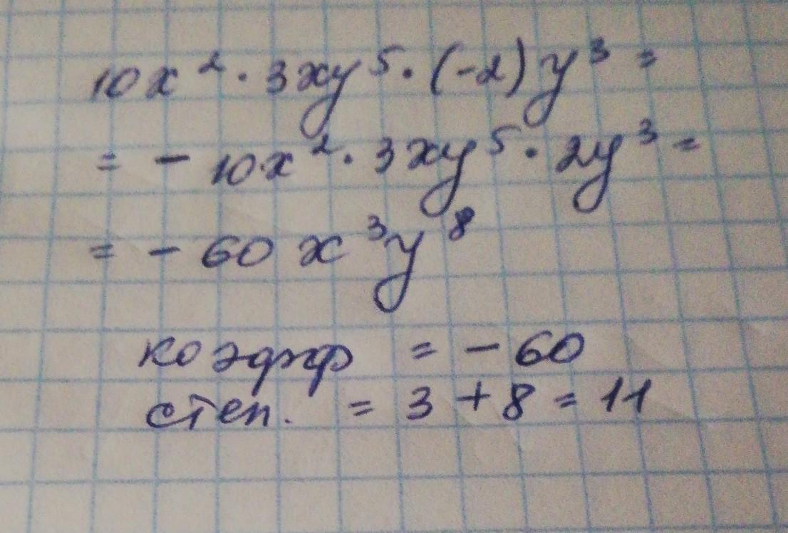 Дан одночлен 10х² *3ху⁵*(-2)у³