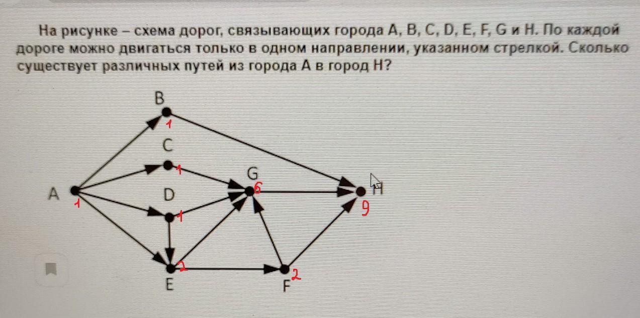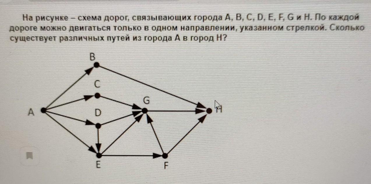 на рисунке схема дорог связывающих города a b c d e f g h l j по каждой дороге можно двигаться только сколько существует различных путей из города А в город Н