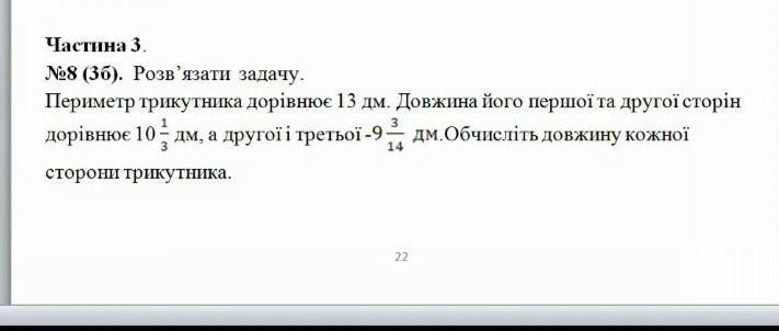 перевірка: 3 11/14 + 6 23/42 + 2 2/3 = 13 (дм)