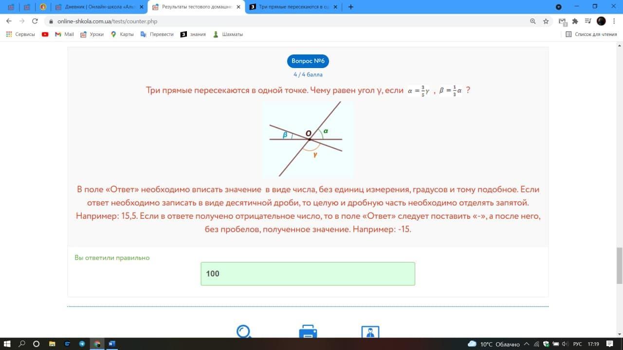 В поле «Ответ» необходимо вписать значение в виде числа, без единиц измерения, градусов и тому подобное. Если ответ необходимо записать в виде десятичной дроби, то целую и дробную часть необходимо отделять запятой. Например: 15,5. Если в ответе получено отрицательное число, то в поле «Ответ» следует поставить «-», а после него, без пробелов, полученное значение. Например: -15.