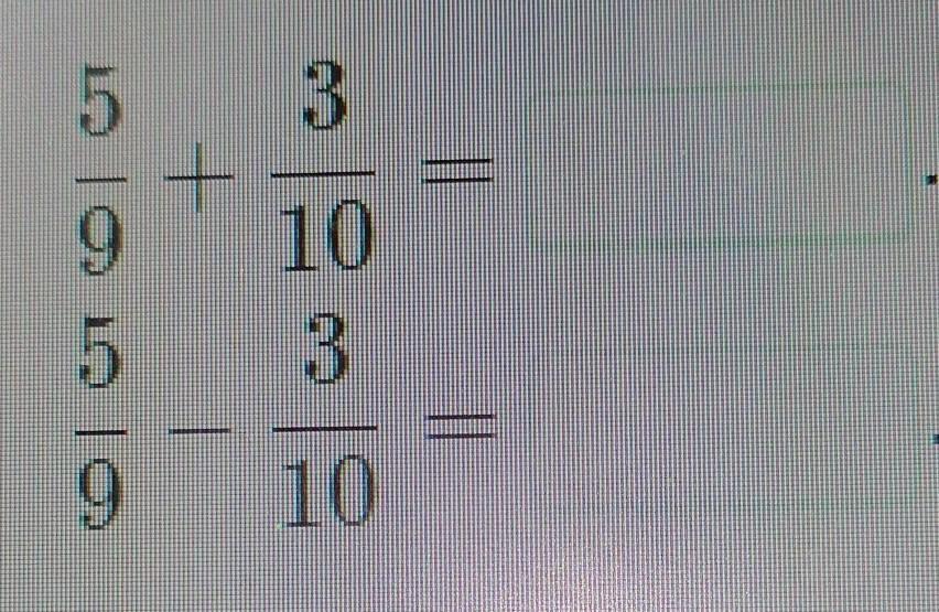 5 / 9 – 3 / 10 = (50 – 27) / 90 = 23 / 90
