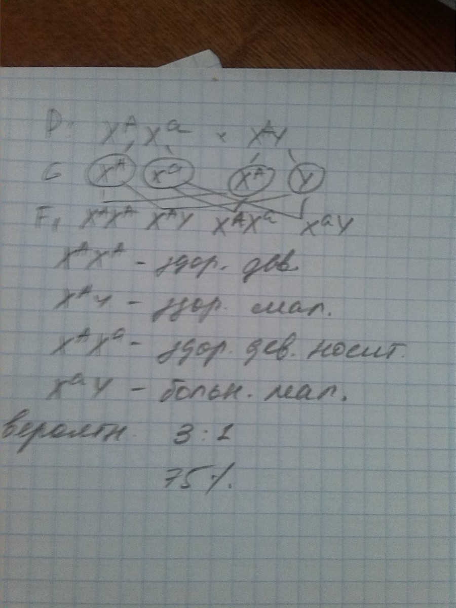 У человека " Куриная слепота" наследуется как рецессивный признак ( а), сцепленный с Х- хромосомой. Родители здоровы ,но отец матери был болен.Определить генотипы и фенотипы детей .Какова вероятность рождения здоровых детей в этой семье?