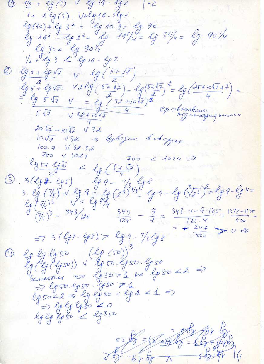 1372 > 1125 значит {3*(lg(7)-lg(5))} > {lg9 - 2/3*lg(8)}