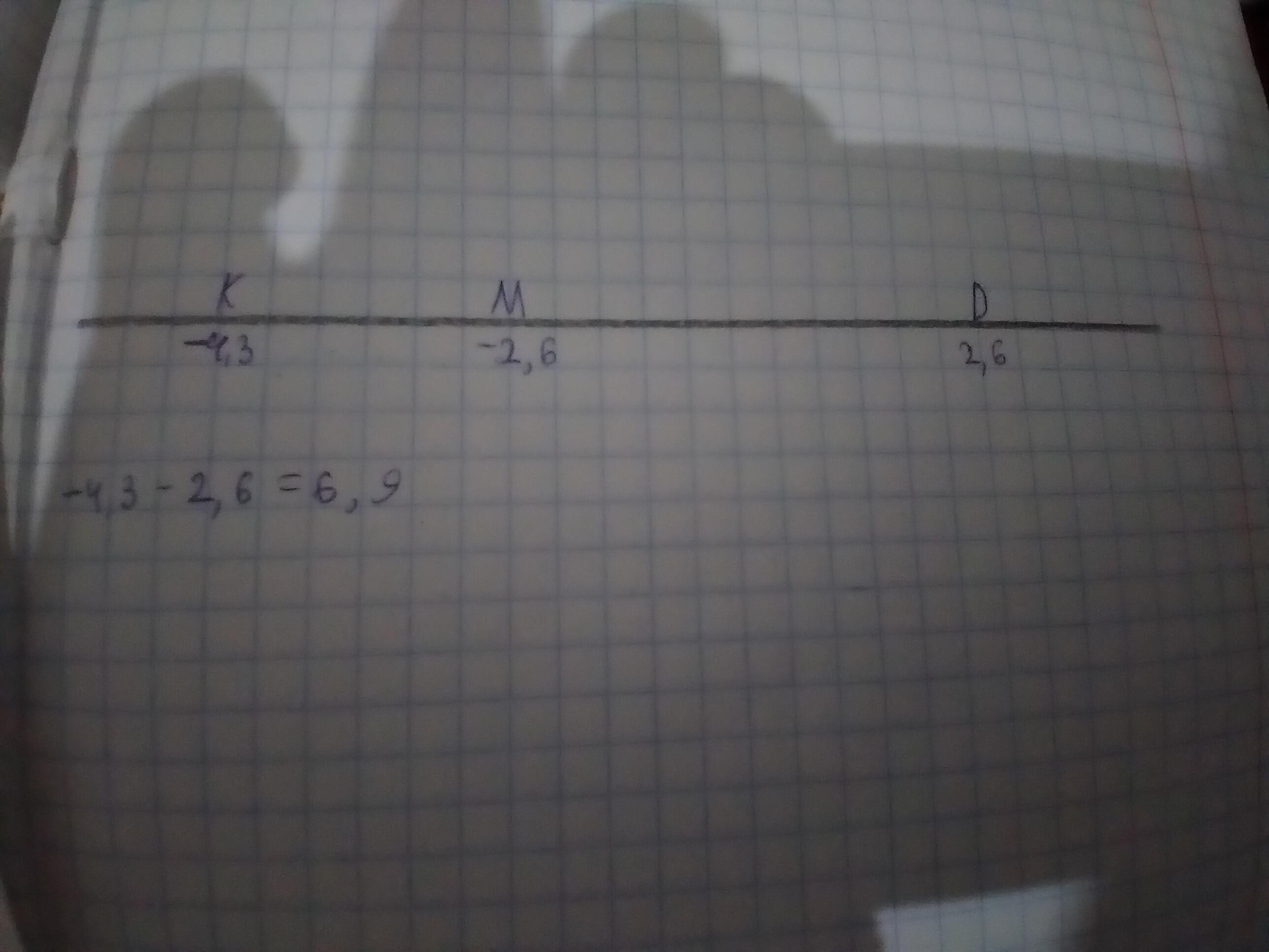 4. Даны точки M(-2,6) и К(4,3). а) Найдите координату точки D, противоположную координате точки М. b) Изобразите точки M, Ки D на координатном луче. c) Найдите расстояние от точки К до точки D.