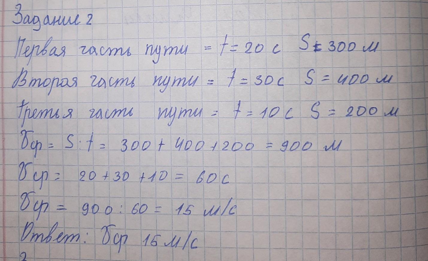 Мальчик за первые 20 секунд прошёл 30 метров, затем за 30 секунд пробежал 200 метров, за следующие 10 секунд прошёл быстрым шагом 120 метров. Найдите среднюю скорость велосипедиста на всём пути.
