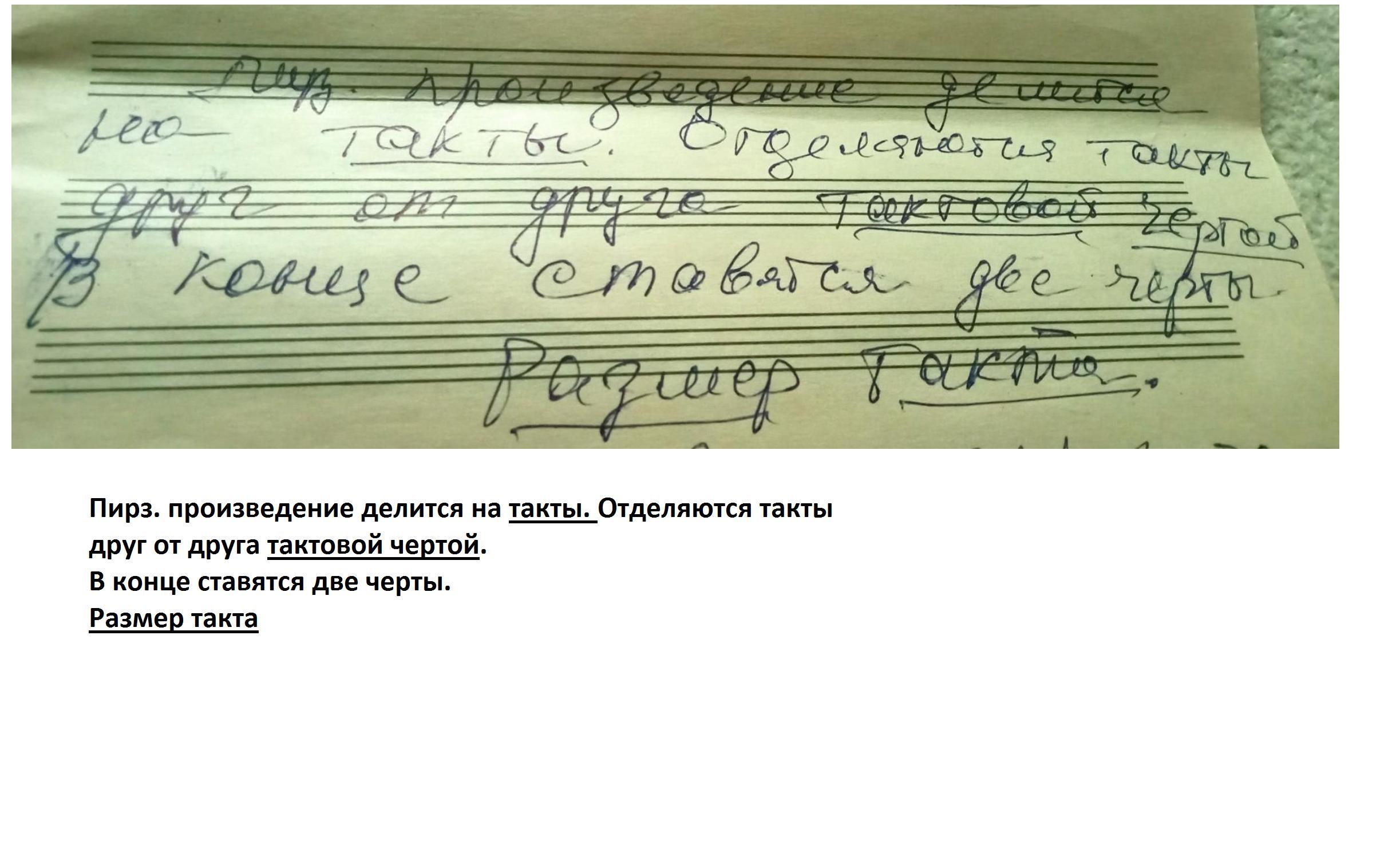 Ответ: произведение делится на такты. Отделаются такты друг от друга тактовой чертой. В конце ставятся две черты.