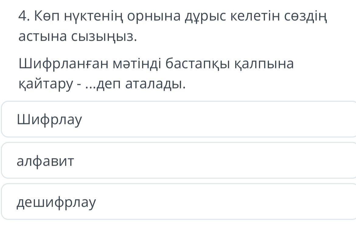 1)Шифрлау(Я конечно не уверена Но я так думаю Если неправильно извини)