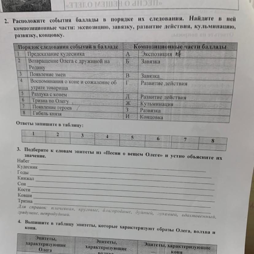 2. Расположите события баллады в порядке их следования. Найдите в ней