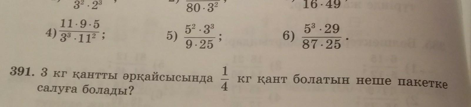 помогите срочно 391.есеп 3кг қантты әрқайсысында 1-4 кг қант болатын неше пакетке салуға болады?
