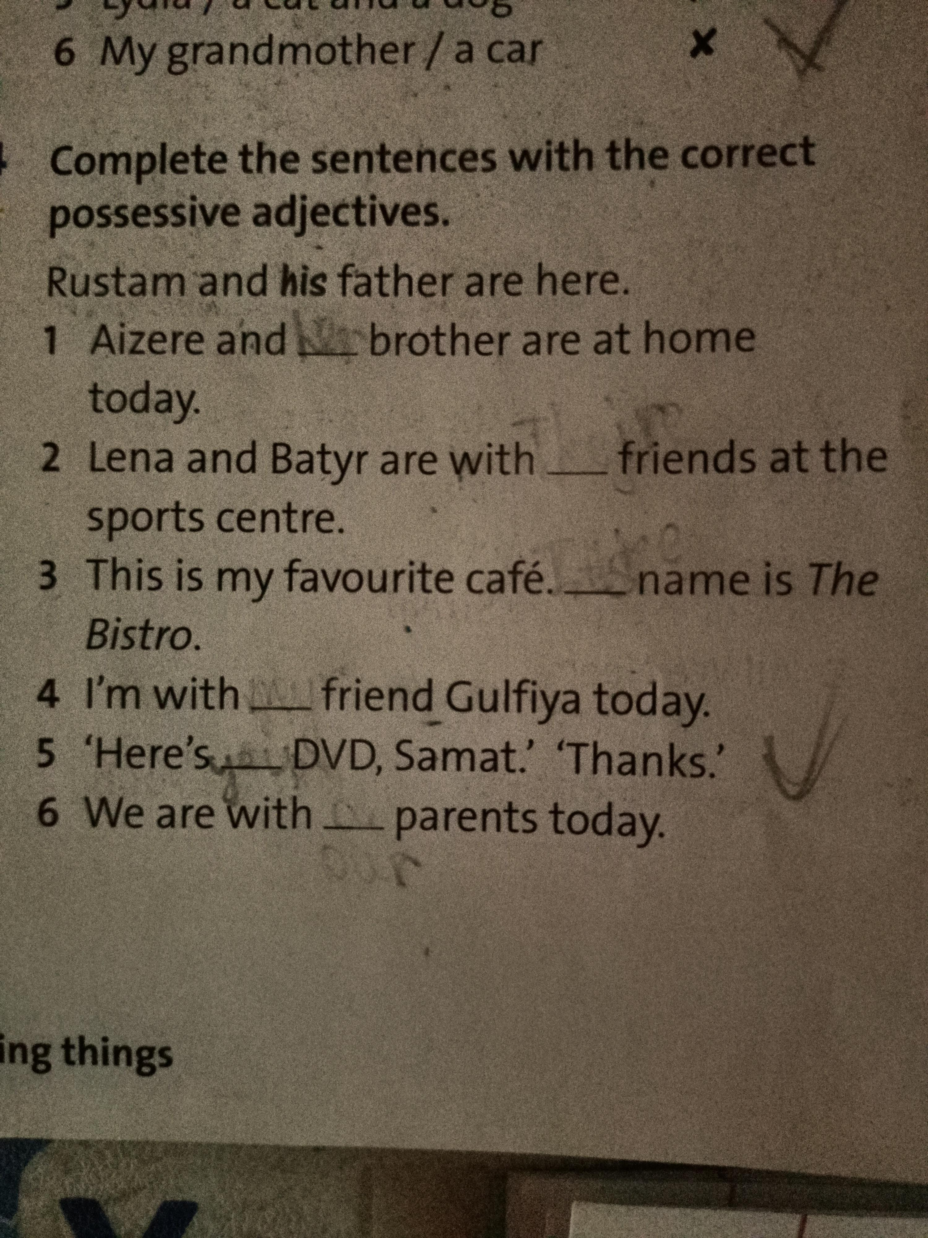 4.I'm with *my* friend Gulfiya today.