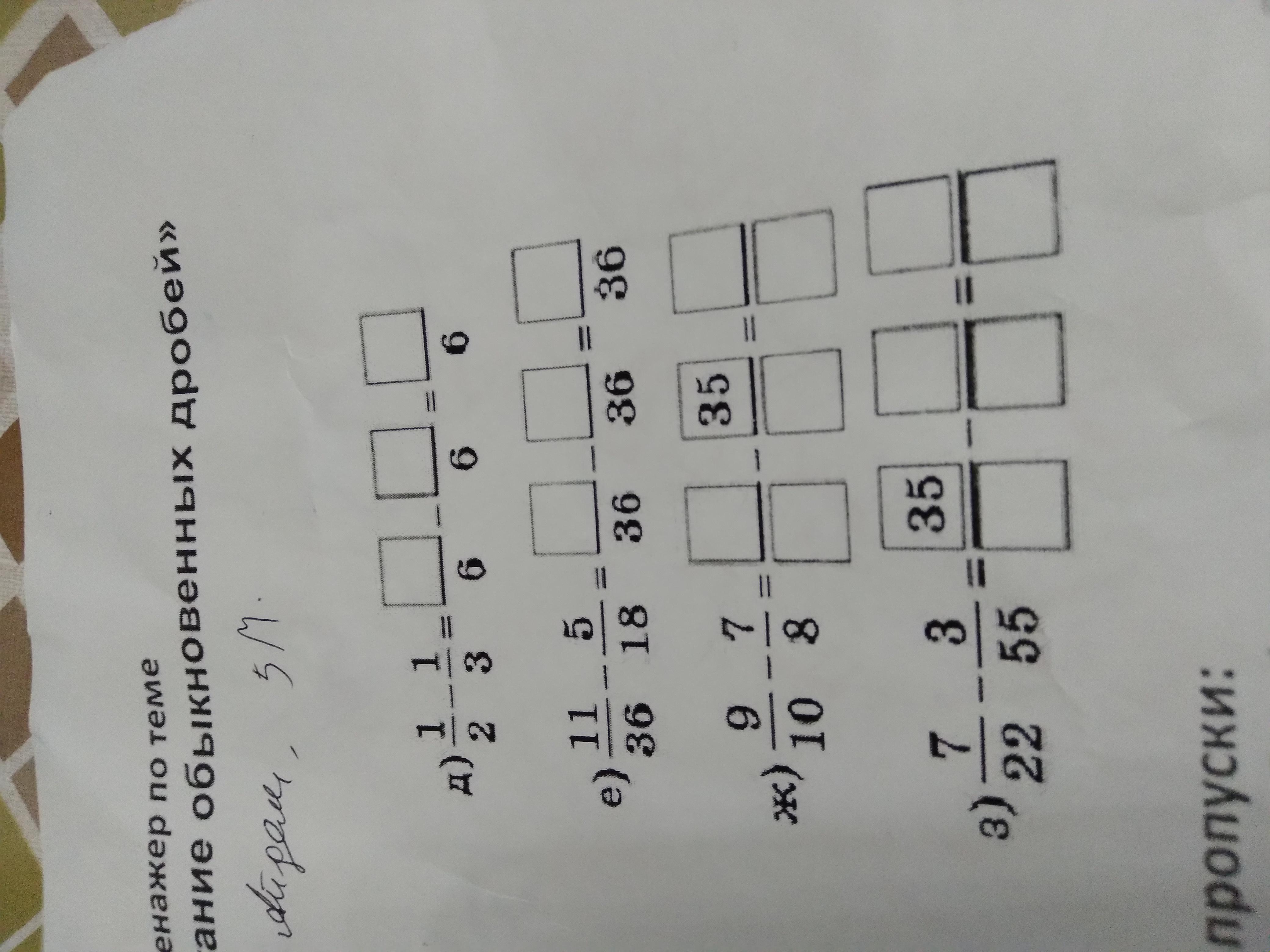 д) 1/2 - 1/3 = 3/6-2/6=1/6