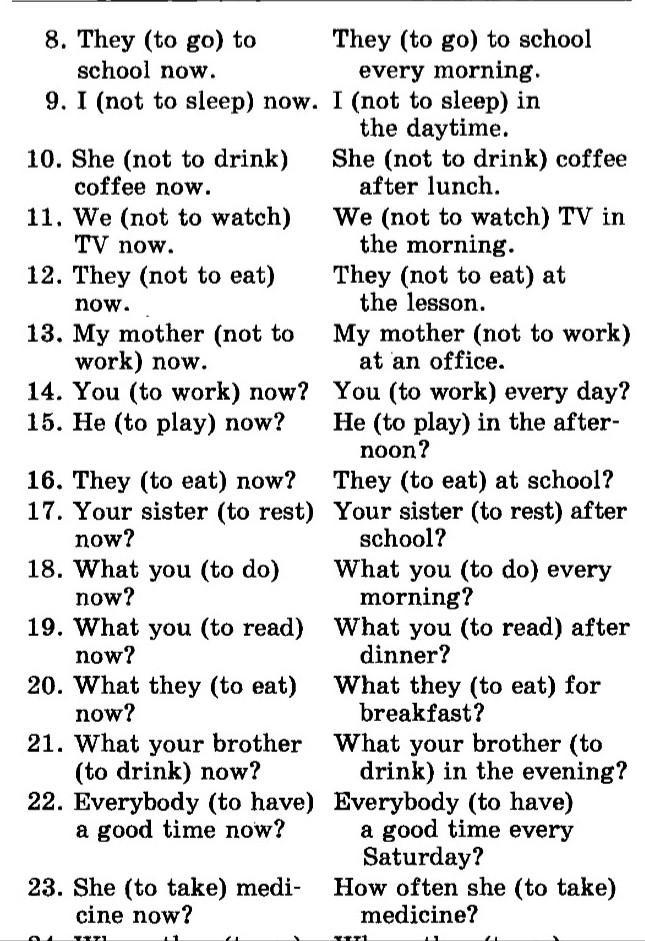21) What is your brother drinking now? | What does your brother drink in the evening?