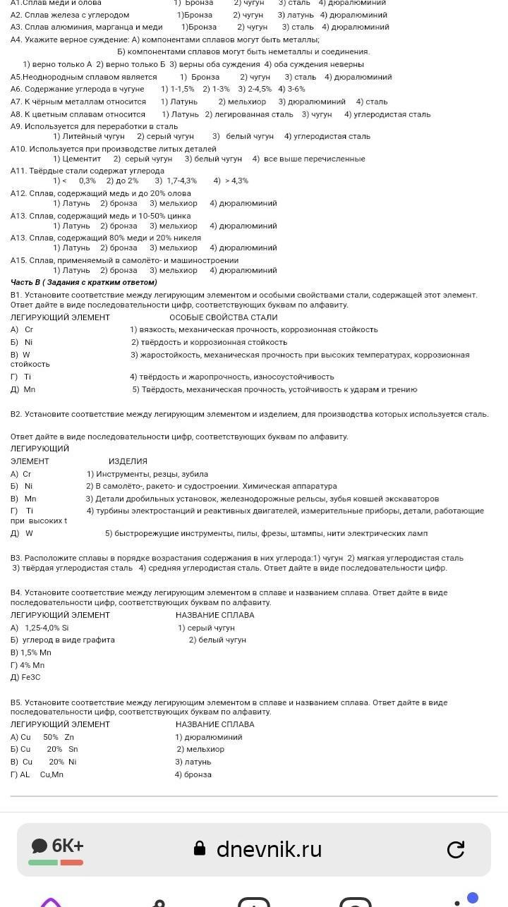 А5. Неоднородным сплавом является - 2)Чугун, 4)Дюралюминий;