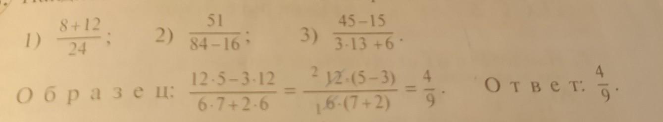 3*15 - 3*5 / 3*13 +3*2 = 3(15-5) / 3 (13+2) = 10/15 = 2/3