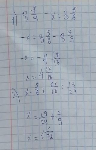 2) х-5/6+11/18=19/24 напишите полное решение пожалуйста