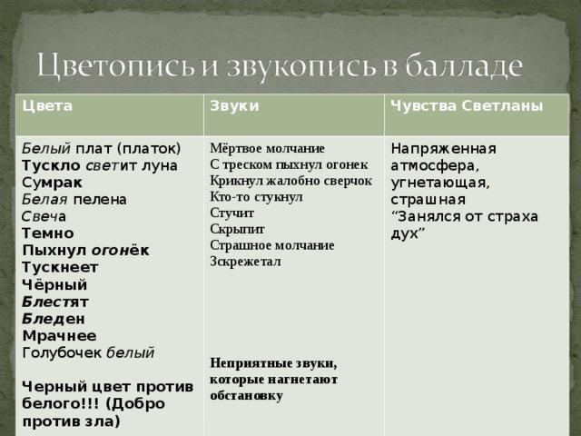 «Цвет, звуки и эмоции в балладе “Светлана”». Сделайте вывод о цве-