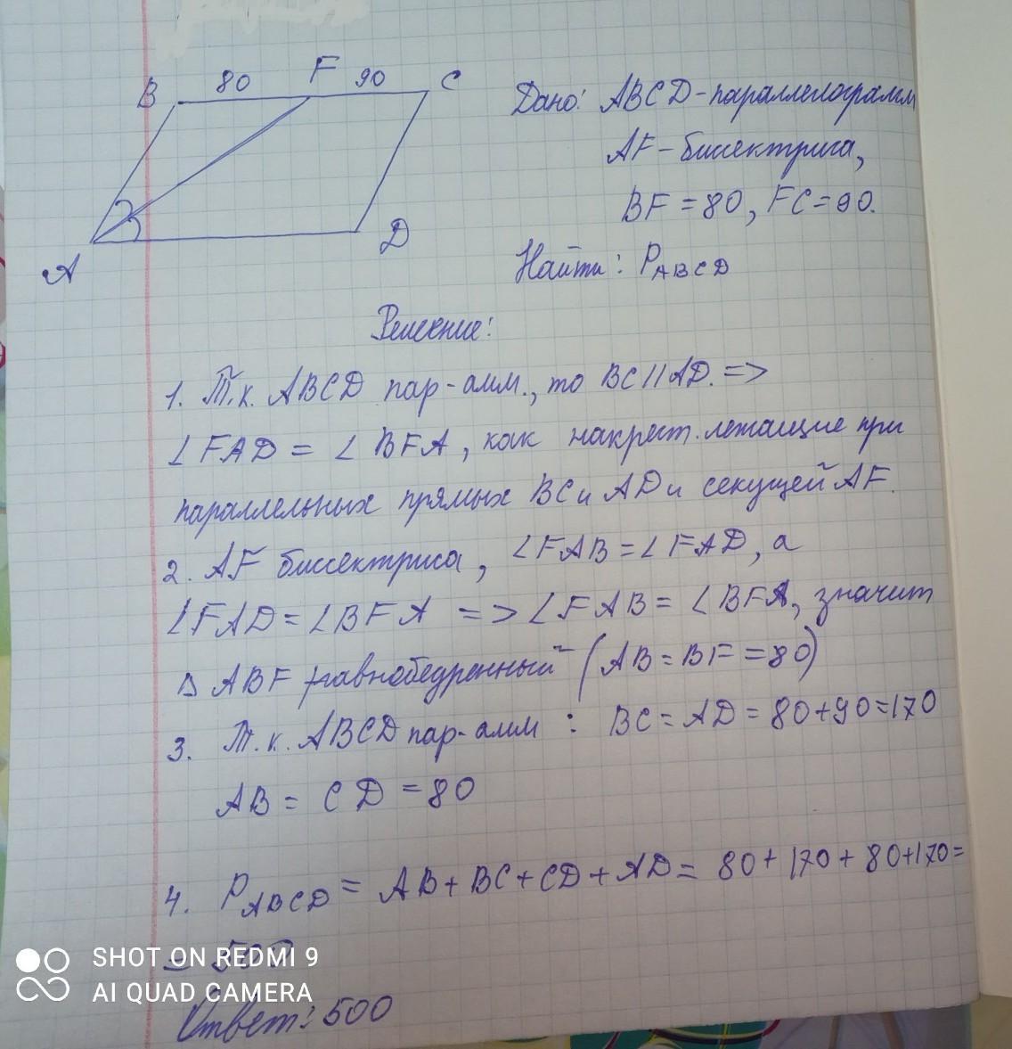 Биссектриса угла K параллелограмма KSOF пересекает сторону SOв точке N.Найдите периметр параллелограмма если SN=39,NO=10