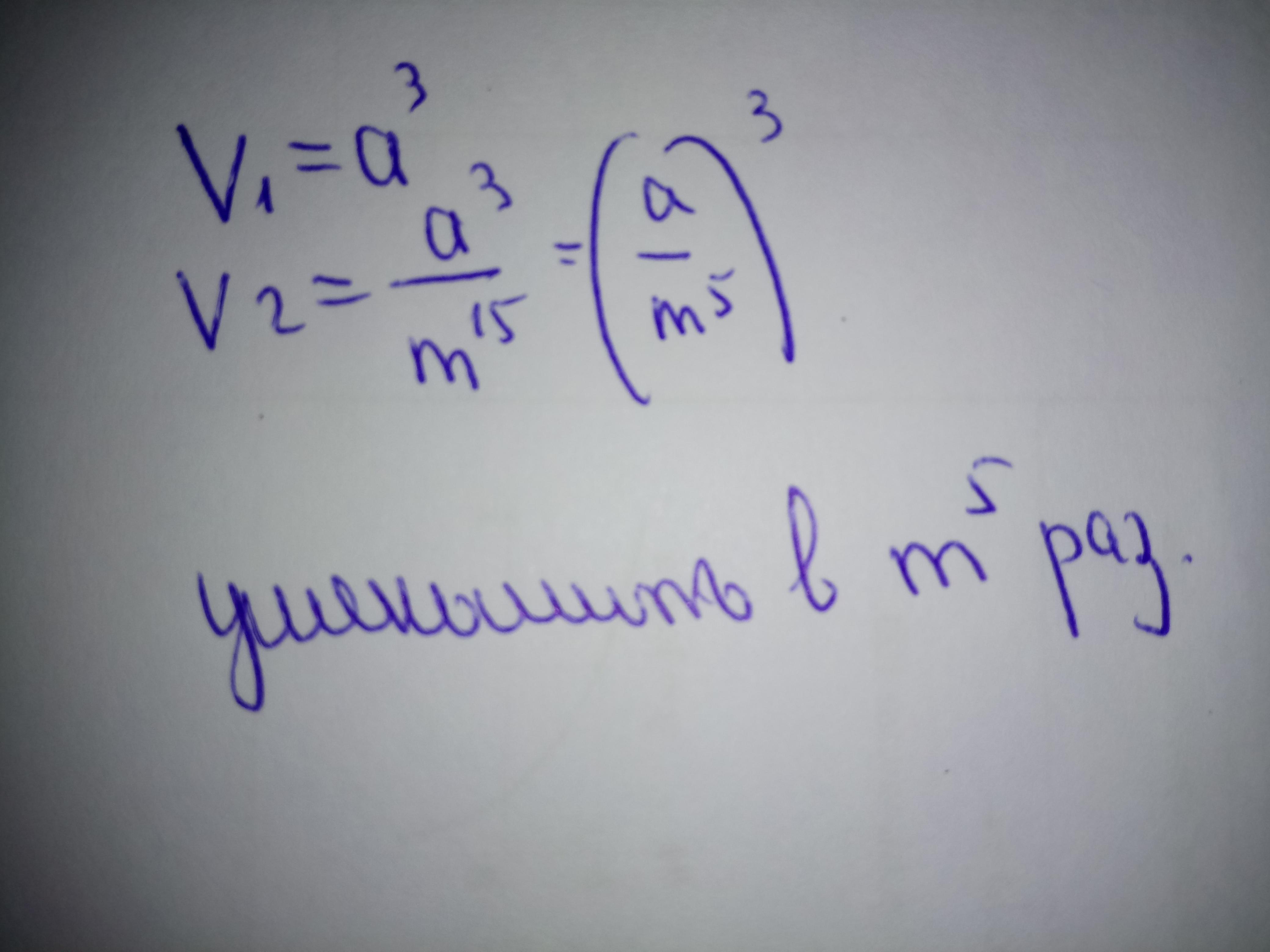 Во сколько раз надо уменьшить ребро куба, чтобы его объем уменьшился в m^15 раз? Помогите пожалуйста