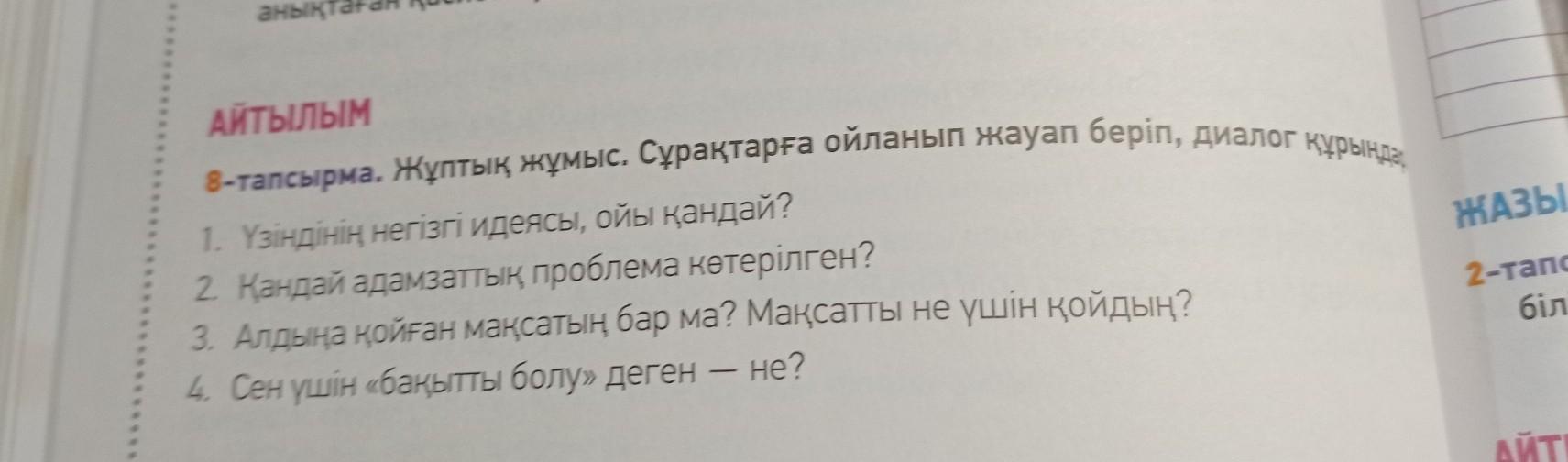 Кандай узынды екенын былмеймын.Дененмен примерно айтып корин.Узындыде бакыттын кандай керемет дуние екенын айткан.Адамзаттын бакытты багаламайтындыгы туралы айткан.Ар адамда аллына койган максаты бар.Максатсыз канаты жок куспен тен.(озынын максатын туралы айтасын)Максатты адам орындап сол мактасына дету ушн койады.Мен ушын бакытты болу деген ол касында сены колдайтын жаксы адамдардын,достарынын,отбасынын болуы.Бакыт акша мен олшенбейды