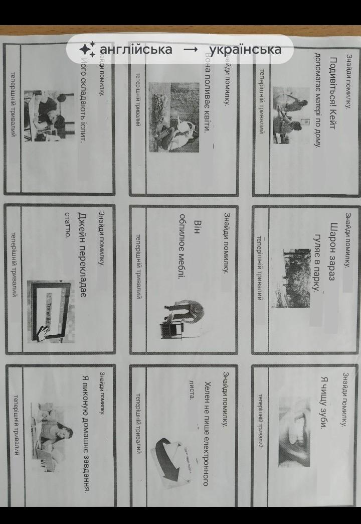 mistake. I am do my homework. Find the mistake. Helen not is writing an email. Find the mistake. Sharon are walking in the park now. Present Continuous Find the mistake. He dusting the furniture. Present Continuous Find the mistake. Jane translates the article. Present Continuous Find the mistake. Look! Kate is helps her mother about the house. Present Continuous Find the mistake. She waters the flowers. Present Continuous Find the mistake. He is taken the exam. Present