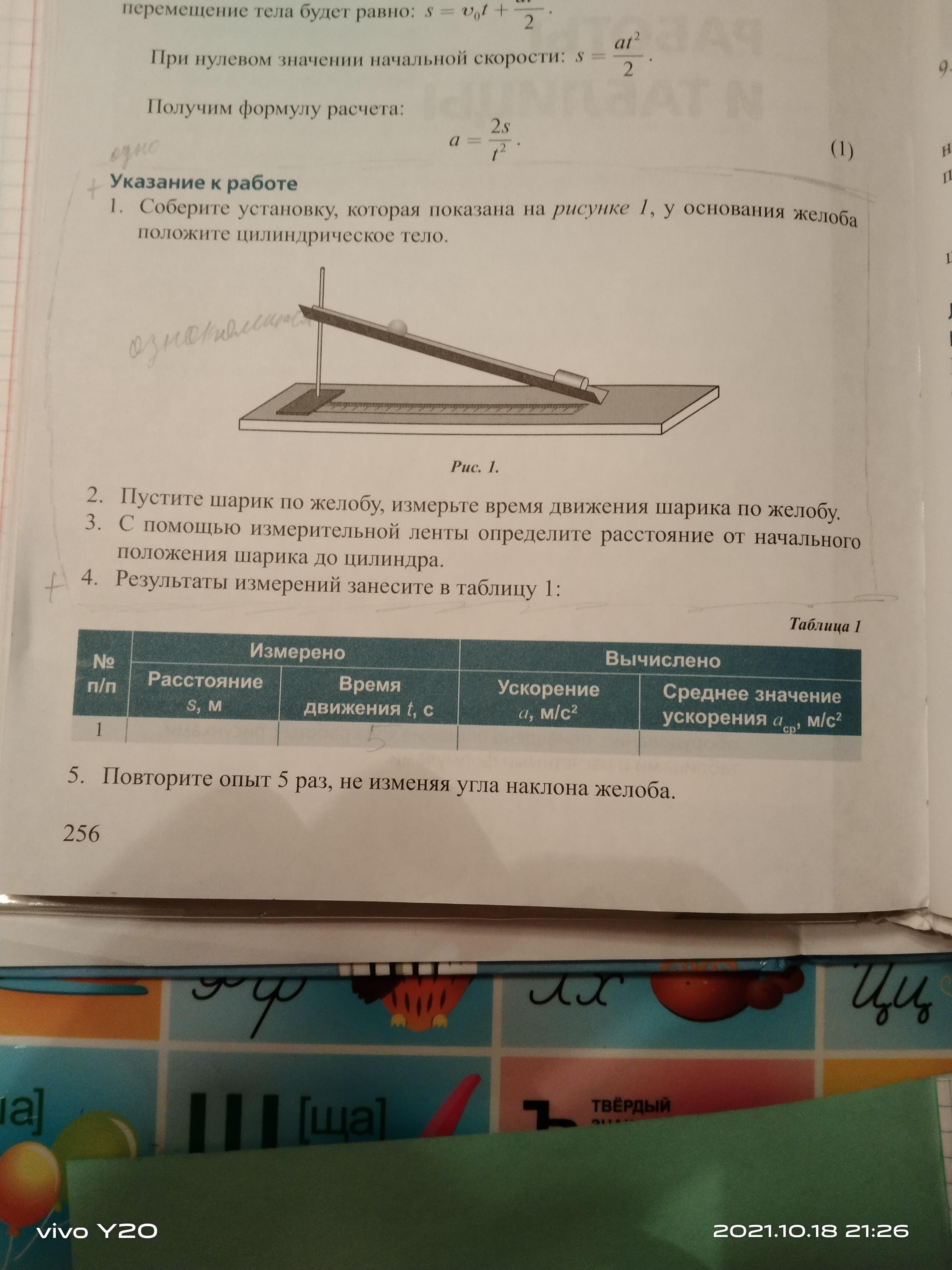 2. Пустите шарик по желобу, измерьте время движения шарика по желобу.