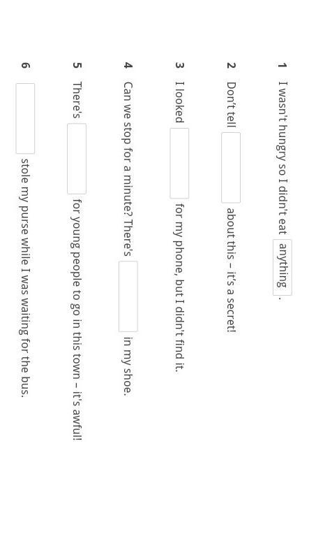 2) anything. 3) anything. 4) anything 5) nothing 6) something