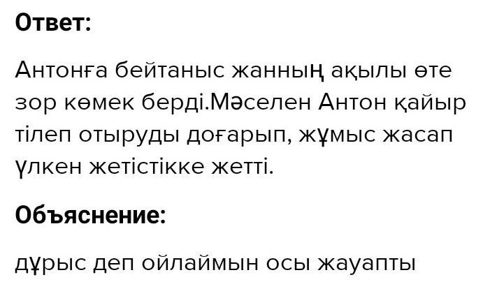 1. Антон қандай адам деп ойлайсыңдар? қайыршы Антонға бейтаныс кісінің ақылы қалай осер етті? Антон бұл сөзден қандай қорытынды шығарды? 67