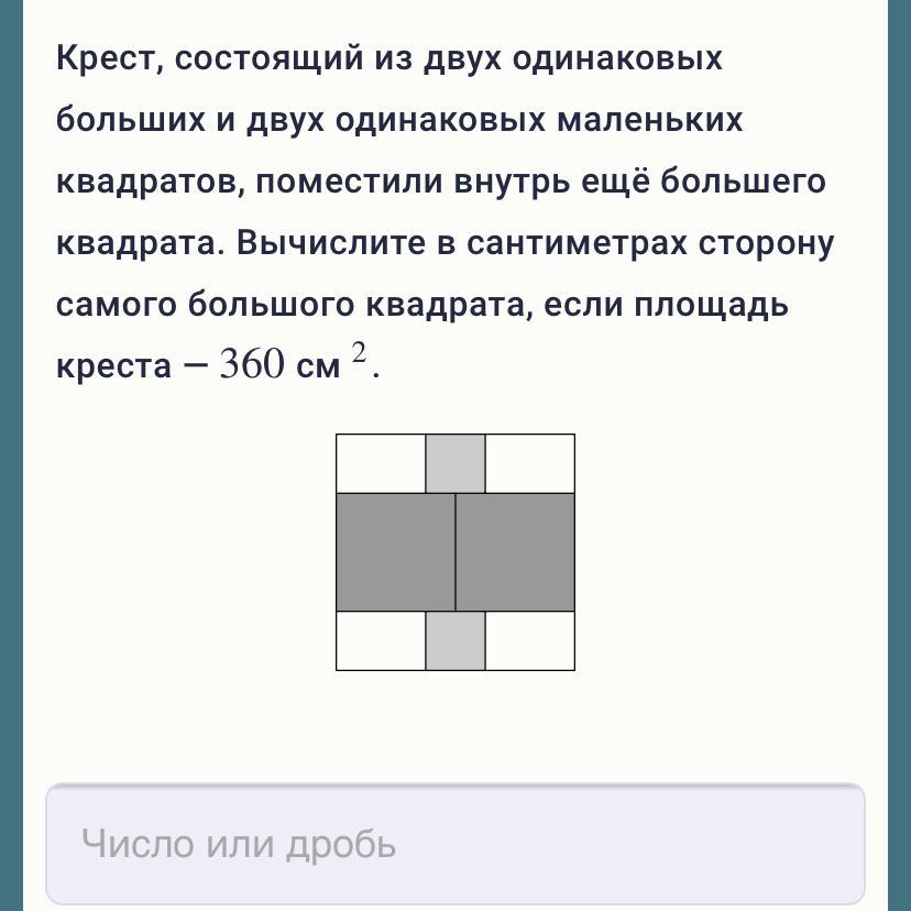 Делим на 10, потому что 1 большой КВ. равен 4 маленьким, таких квадратов два, 8 + 2 = 10