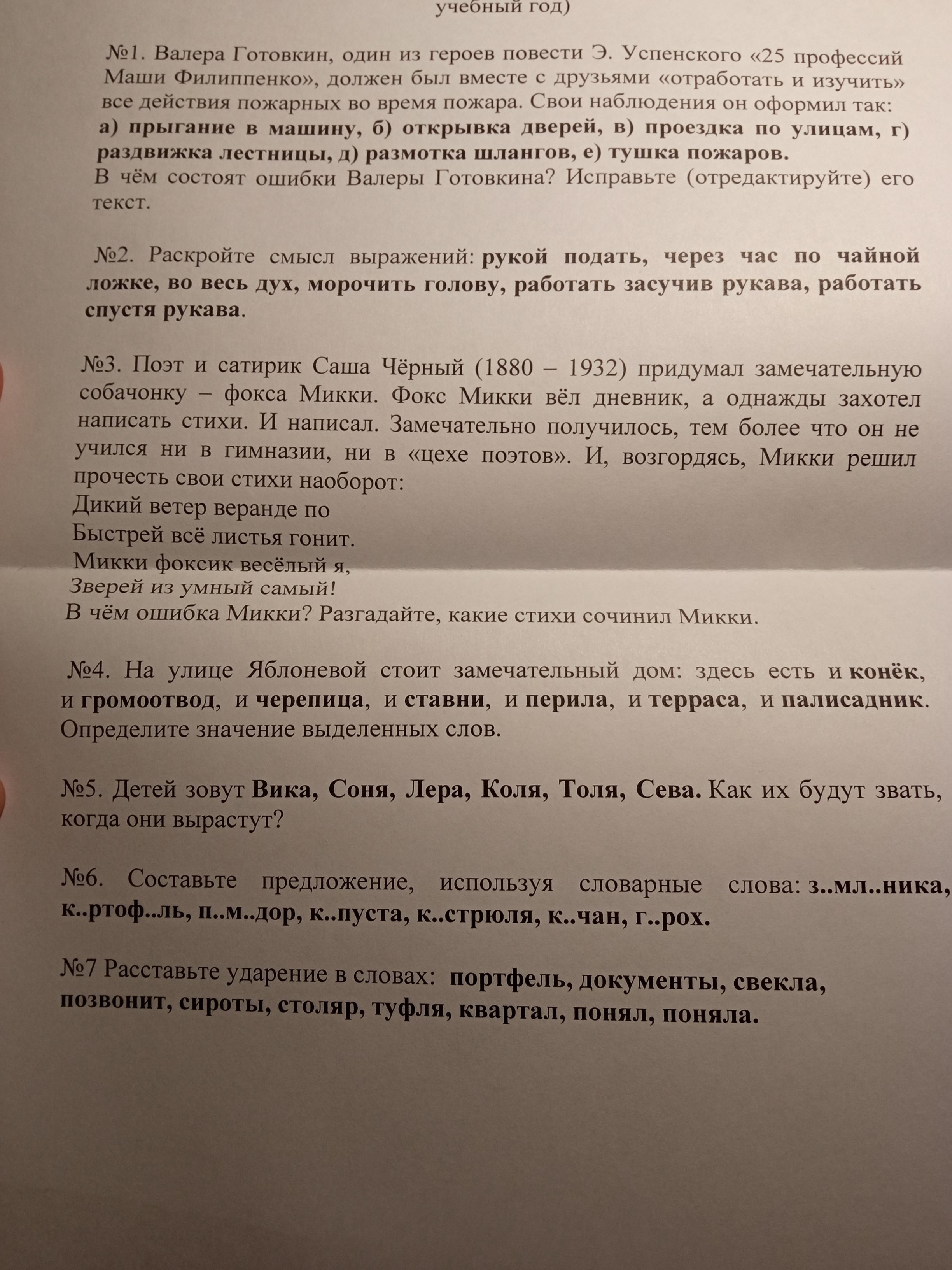 7.портфе́ль, докуме́нты, све́кла, позвоня́т, сиро́ты, столя́р, туфля́, кварта́л, по́нял, поняла́.
