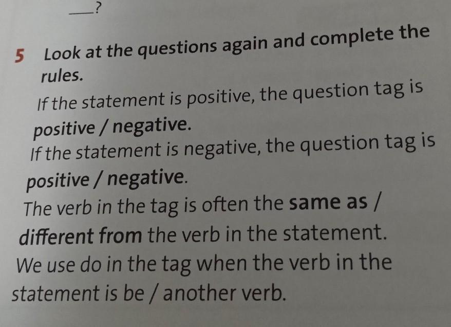 If the statement is positive, the question tag is negative.