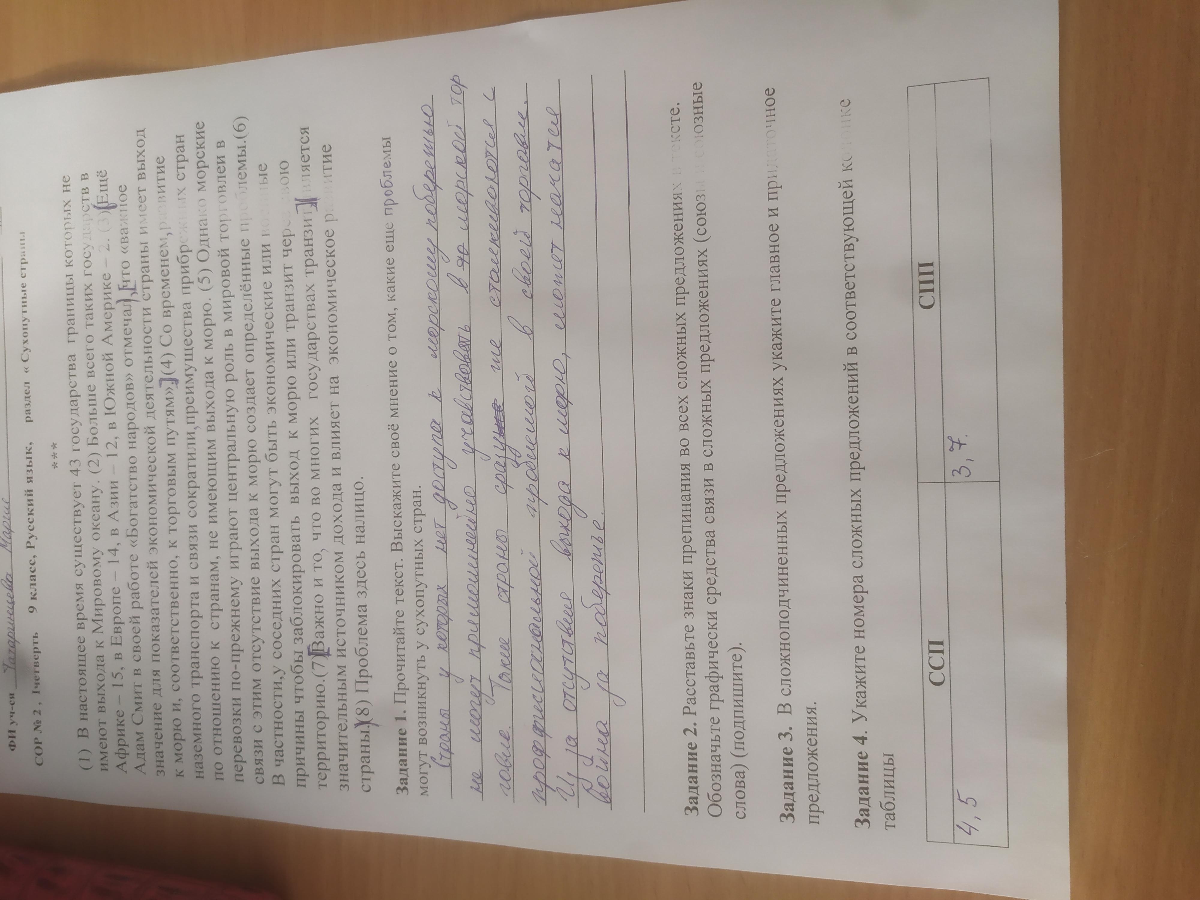 Задание 4. Укажите номера сложных предложений в соответствующей колонке таблицы