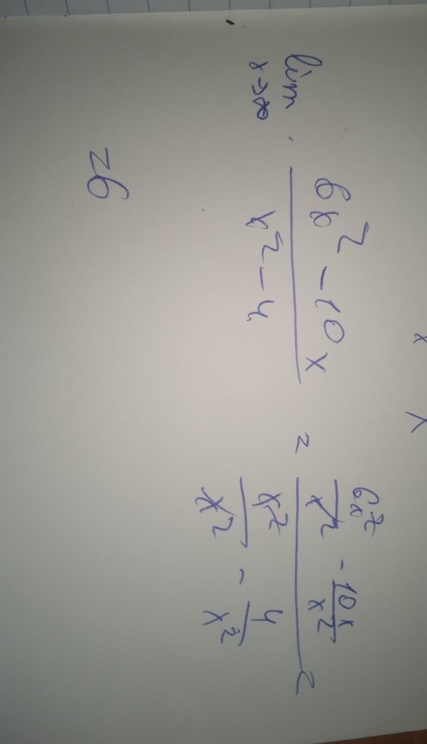 Сейчас объясню так,мы умножаем 3х-5 на 2х,получаем lim (6х²-10х/х²-4),делаем все слогаемые на х² и получаем 6