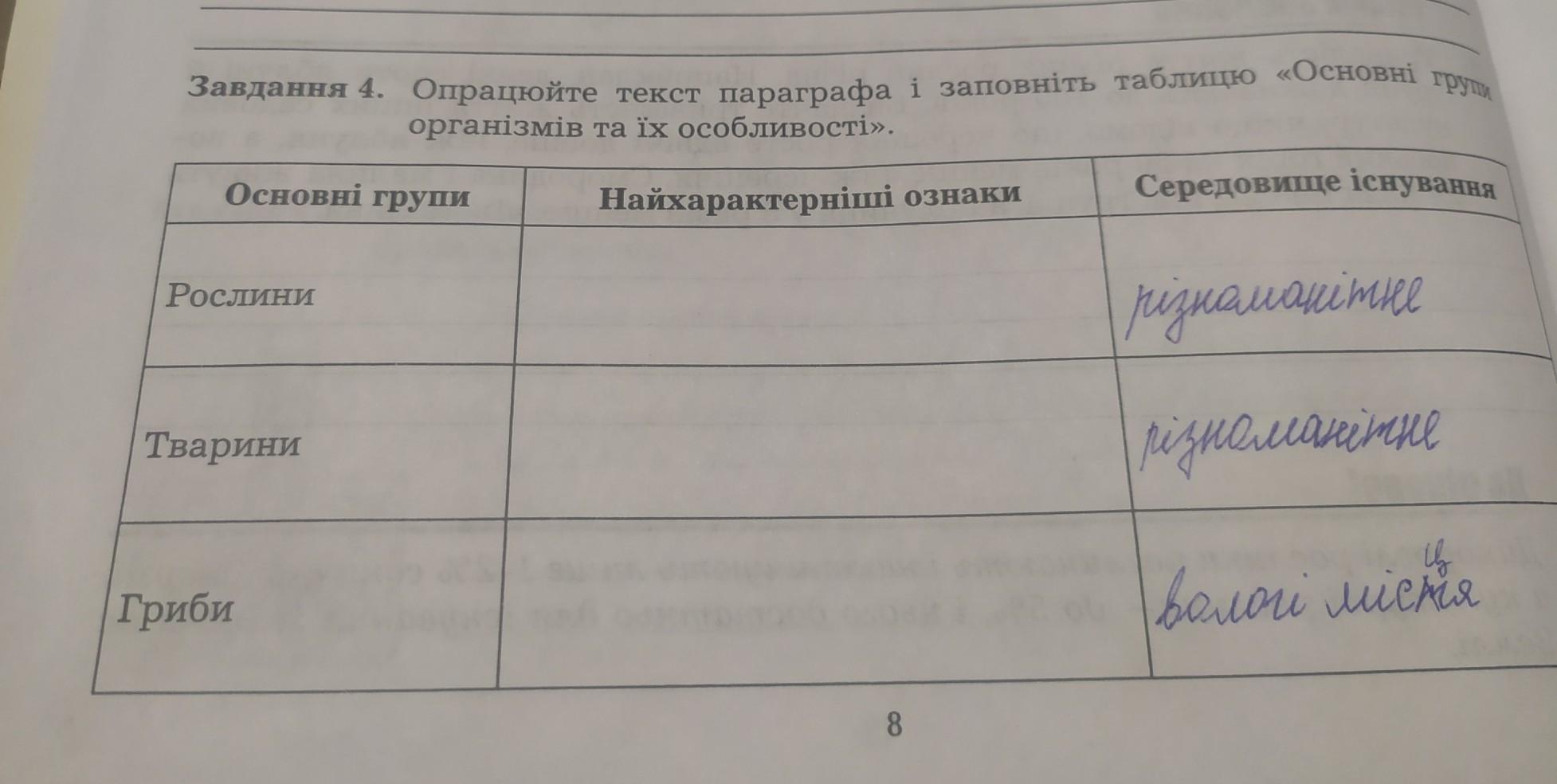 ПОМОГИТЕ ПОЖАЛУСТА ДАЮ 10 БАЛОВ опрацюйте текст параграфа і заповніть таблицю основні групи організмів та їх особливості