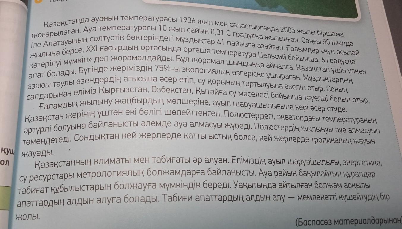 1.Қазақстанның климаты туралы қандай тұжырым жасауға болады.