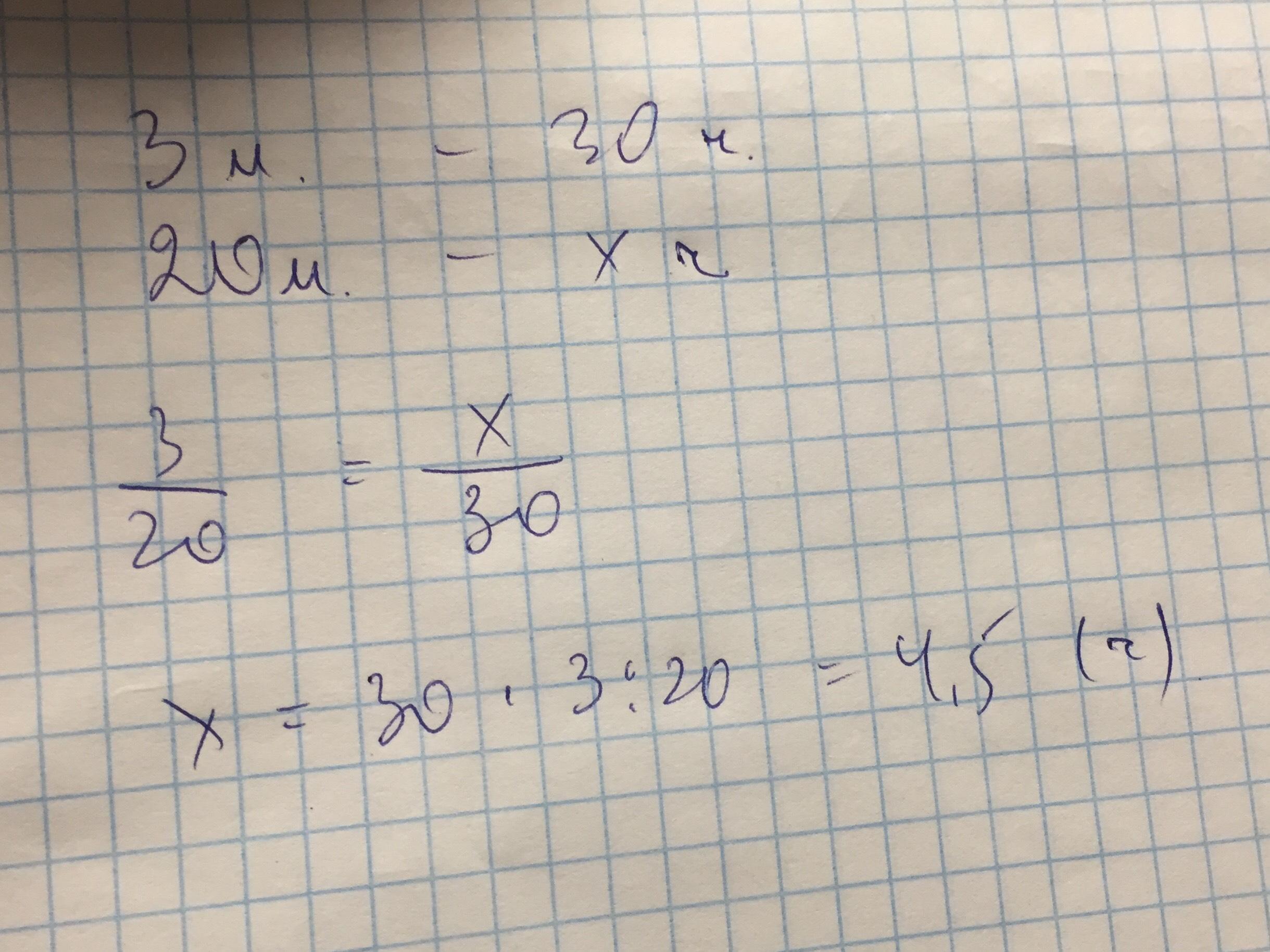 Понятно, что в 20/3 раз быстрее, т.е за 30*3/20=9/2=4,5 часа.