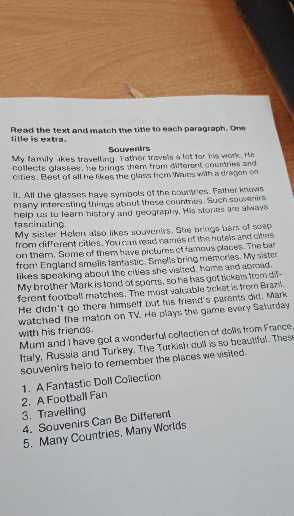 Прочтите текст и сопоставьте заголовок с каждым абзацем. Один титул лишний. Сувениры